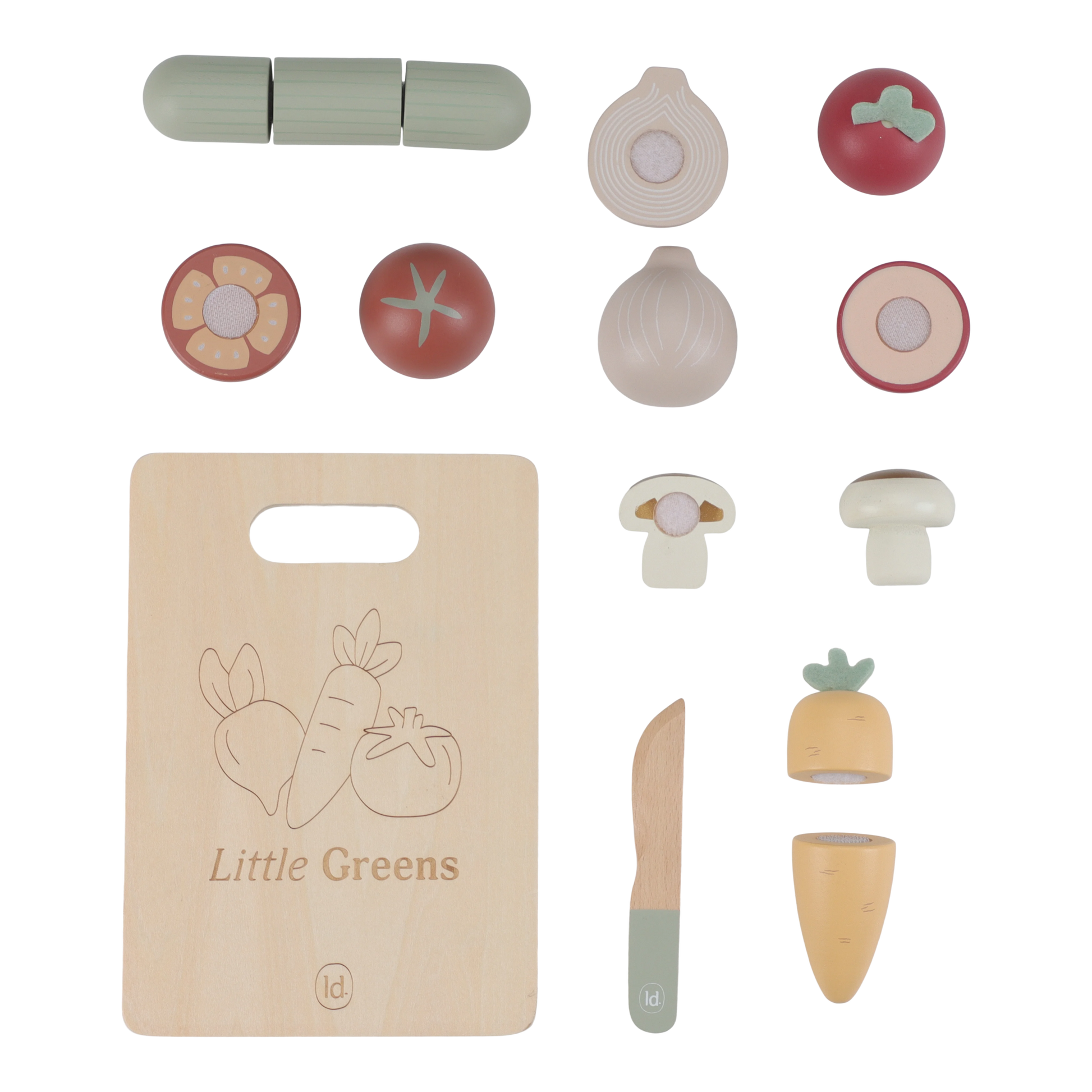 Zeit, gesunde Gemüserezepte zuzubereiten! Dieses Set aus Holzschnittgemüse enthält sechs verschiedene Sorten: eine Karotte, Gurke, Tomate, Zwiebel, Rote Bete und Champignon. Schneiden Sie sie mit dem Holzmesser in zwei Hälften und verbinden Sie sie dann einfach mit dem Klettband wieder miteinander. Perfekt für Rollenspiele in der Spielküche und eine unterhaltsame Möglichkeit, mehr über gesunde Ernährung zu lernen. Was steht heute auf der Speisekarte?